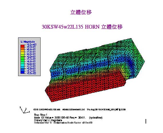 利用有限元分析软件模拟分析设计超声波焊头模具,利用这种方法找出合适的超声波模具的设计方式,合适的振幅分布及少的应力影响,在一些特殊之应用,除了HORN (超声波焊头) 要考虑外,其他连要熔接之塑料工件,甚至底座也要分析,透过这些应用,不仅超声波焊头 (HORN)之寿命延长,熔接质量也大幅提升。一起学习超声波焊接知识。