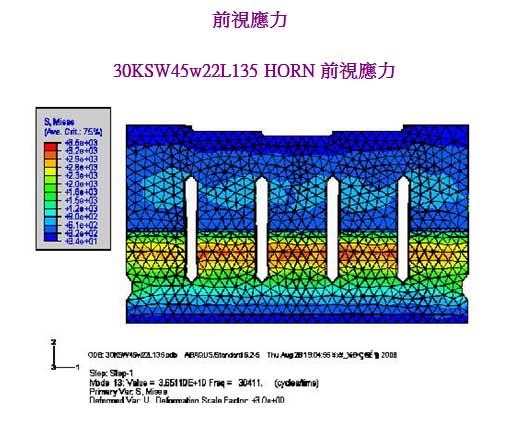 利用元素内之插值函数,可得元素内任何位置之应力、应变与变位超音波喇叭(HORN)有限元素分析展开