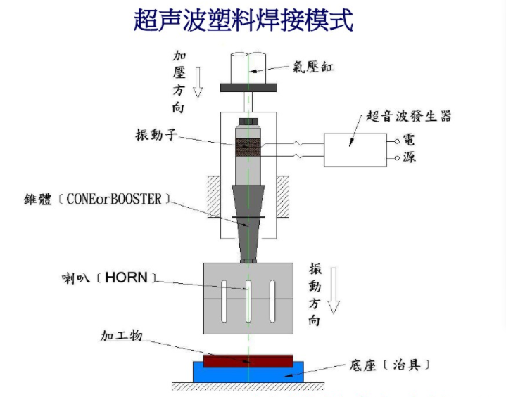 超声波塑料焊接是常见的焊接工艺,可适用于众多行业,例如医疗环保(无纺布过滤),电源适配器外壳,汽车内外饰件,塑料玩具精密电子塑料等都可用超声波焊接机。由于超声波塑料焊接速度快,无高温火花,安全环保的特点,在民用塑料产品中得到了极大的推广。超声波塑料焊接节能环保无污染,成本低效率高,焊接时间短,被焊接的塑料件表面无损坏,非焊接区域不发热,容易实现自动化生产,焊接参数均可通过软件系统进跟踪监控而减少故障,焊接方法有熔接法、碟合法、嵌入/埋植法、铆接法、点焊法、点焊法、剪切法/切除法及成型法。