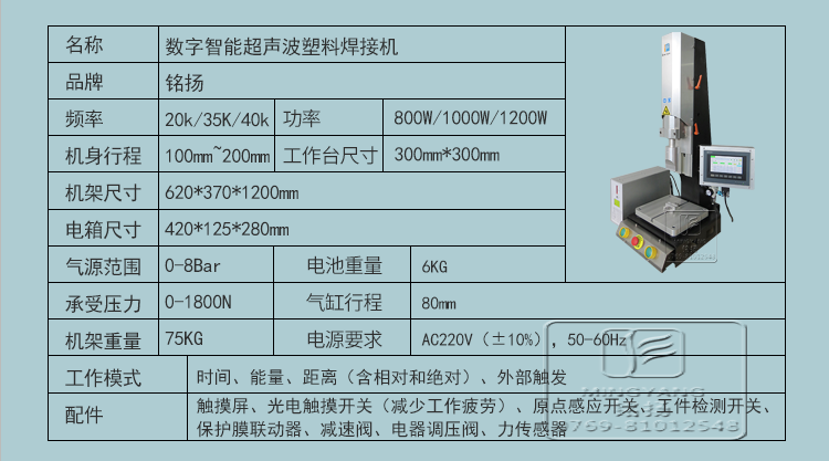 1.与超声波发生器相互通讯,可固定在焊接机架上面